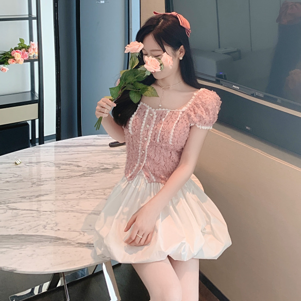 21夏新港味小性感立体切花微弹蕾丝拼接可露肩镂空短袖套头上衣 伊斯贝迩服饰 批发货源 搜款网